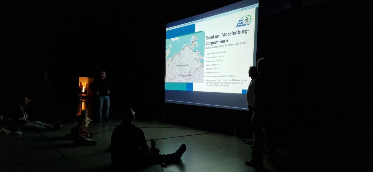 Die drei Abenteurer erzählten von ihrer erfolgreichen Teilnahme an der 1000-Kilometer-Rundfahrt durch Mecklenburg-Vorpommern. Der Mix aus Ausdauer, Teamgeist und landschaftlichen Eindrücken begeisterte alle Zuhörer.