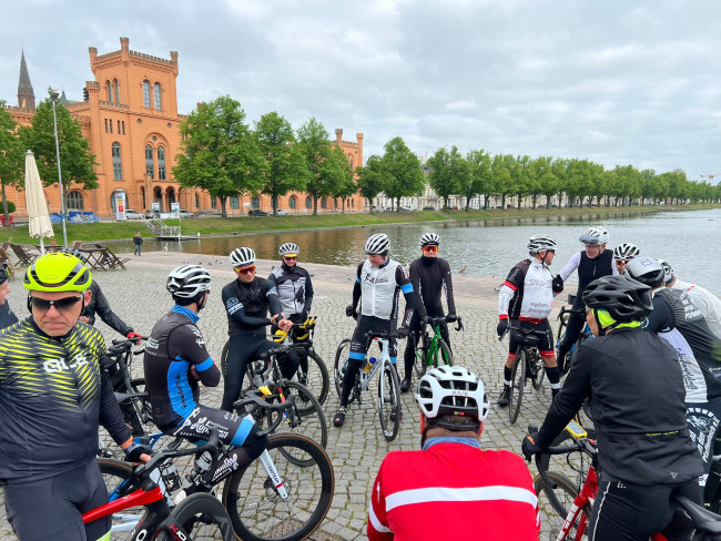 Ziel der Ausfahrt war Warin, wo die Gruppe eine wohlverdiente Pause einlegte. Bei Kaffee und Kuchen konnten die Energiespeicher wieder aufgefüllt und die bisherigen Kilometer Revue passieren lassen werden – natürlich begleitet von guter Stimmung und vielen Gesprächen.