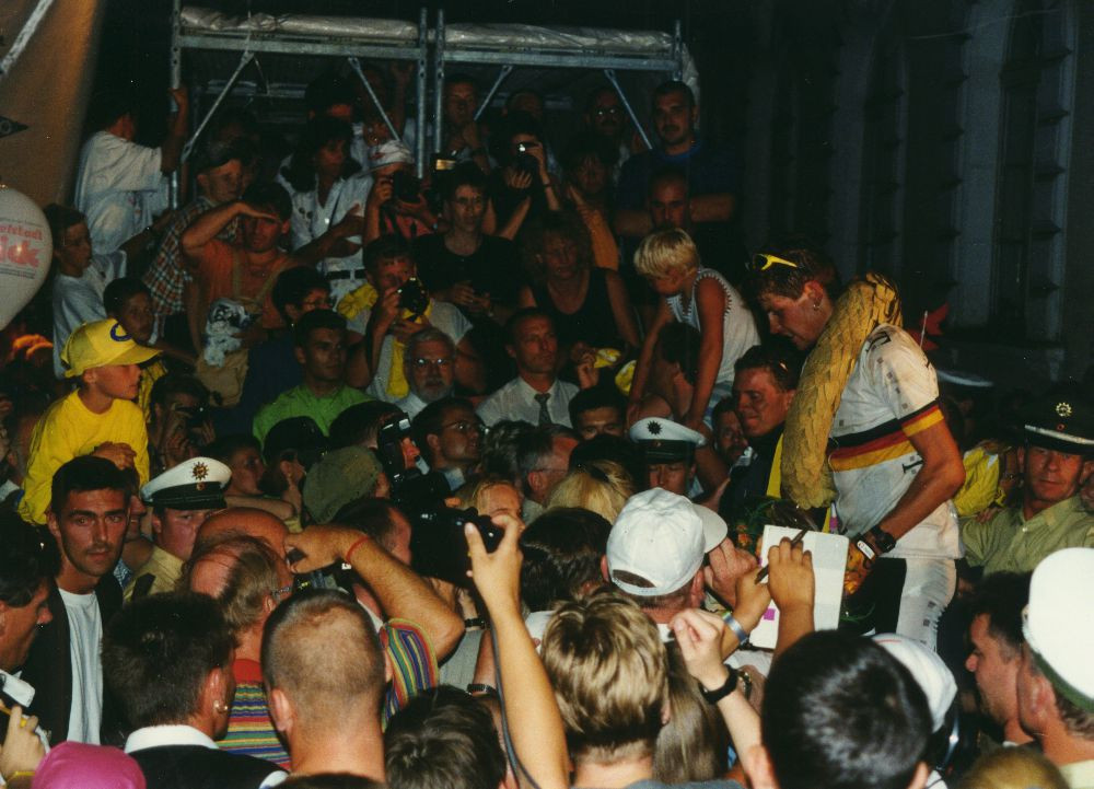 Jan Ullrich kommt als Tour de France-Sieger an den Pfaffenteich und wurde von 40.000 Menschen gefeiert.